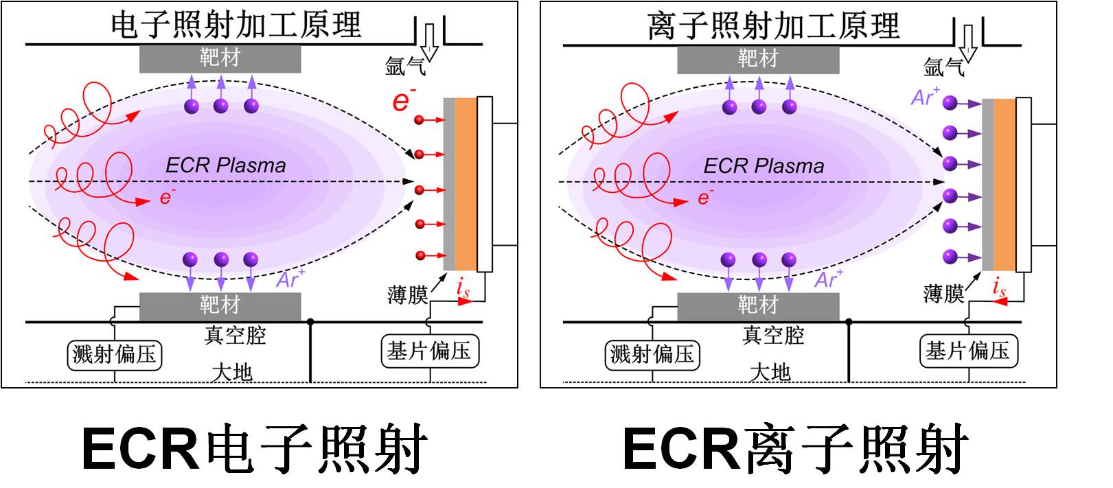 多功能ECR纳米表面加工系统主要由微波装置、电子回旋共振(ECR)等离子体溅射装置、气路和真空装置等部分组成,可实现离子和电子照射法制备薄膜,化学气相沉积法制备薄膜、离子刻蚀、电子表面抛光和元素掺杂等各种不同的薄膜加工工艺。由于多功能ECR纳米表面加工系统具有离子、电子两种照射方式以及对基片表面照射能量和元素掺杂含量的精确控制等优点,为制备和加工新型纳米表面提供了可能。