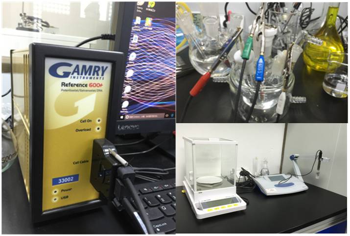 电化学实验平台是一套完整的电化学试样制备和测试系统,包括用于电极打磨抛光用的金相磨抛机、用于电解和电沉积的交直流电源、用于分散和清洗的超声设备、用于处理易挥发和有害物质的通风柜、用于溶液pH值测定的pH剂、用于药品称量的电子分析天平、用于药品溶解加热的可控温磁力搅拌器、用于去离子水制备的超纯机和最核心的电化学性能测试设备——电化学工作站,以及各型电解池、参比电极和辅助电极。