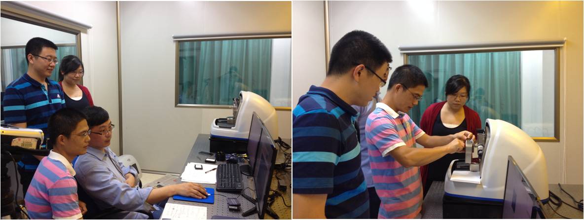 上图为我所成员正在听取工程师讲解和学习操作扫描原子力显微镜