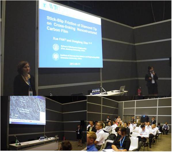 根据大会提供资料统计,参加本次会议的中国科研单位有25家,我校在本次会议发表报告共计8篇,位列全国第4,全广东省第1,仅次于清华大学(29篇),西安交通大学(23篇)和武汉材料保护研究所(10篇)。其中发表演说报告5篇,位列全国第7;发表海报3篇,位列全国第3。我们注意到同样来自广东省的华南理工大学在本次会议上发表演说报告4篇,发表海报0篇,从整体和各项数据来看,我校都强于华南理工大学。以上数据说明在国际舞台上,我校在摩擦学以及纳米表面科学领域已经进入到全国前列,与华南理工大学相比有较为明显的优势。