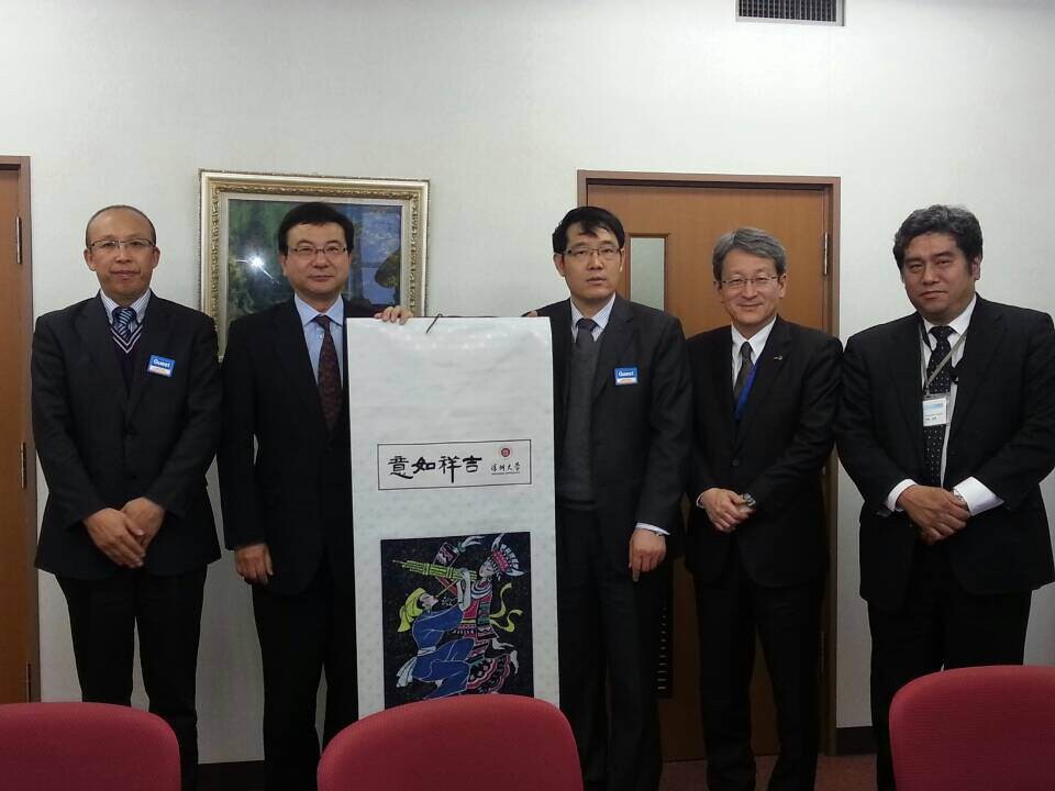 左起刁东风所长,福田幸一常务执行议员,阮双琛副校长,唐泽裕之部长,竹部俊彦组长。