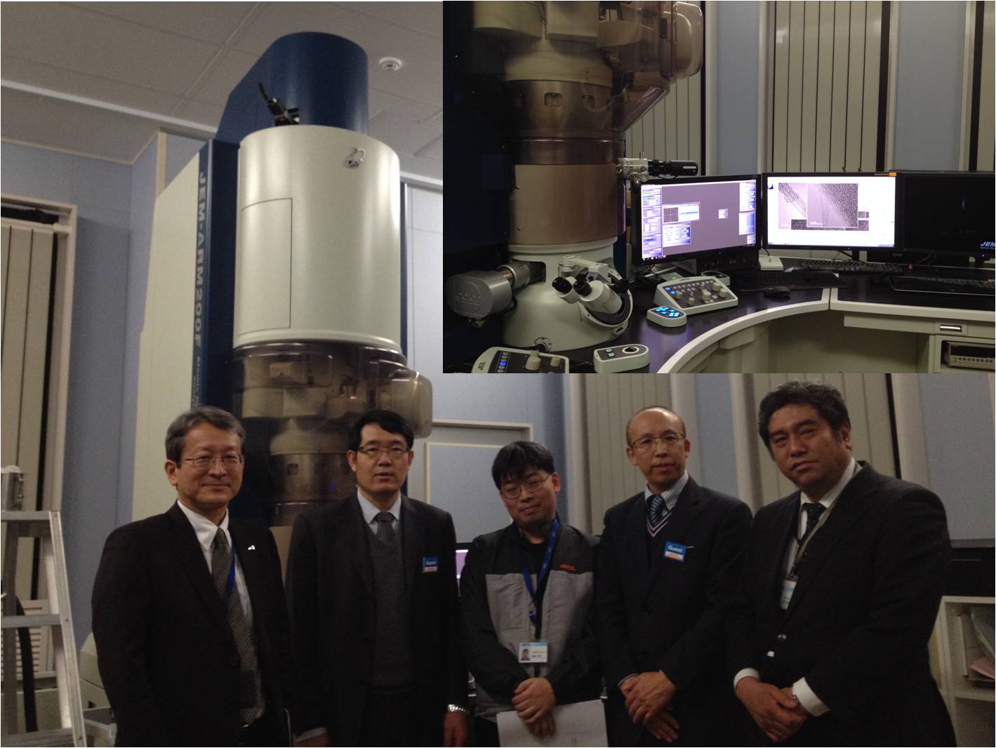 2014年12月21日到23日,深圳大学阮双琛副校长,纳米所刁东风所长等一行4人对世界顶级的科学仪器生产制造商日本电子株式会社(日本东京)进行了访问交流。访问过程中,对该公司生产的各型扫描电子显微镜、透射电子显微镜等应用于纳米表面科学及工程的科学设备进行了系统考察。其中,重点考察了该公司最近研制双球差校正高分辨透射电镜JEM-ARM200F系列的主要构造、功能及其高分辨率等优异性能,探讨了该设备在我校及我所纳米表面研究中的应用,同时也对进一步合作进行了洽谈。