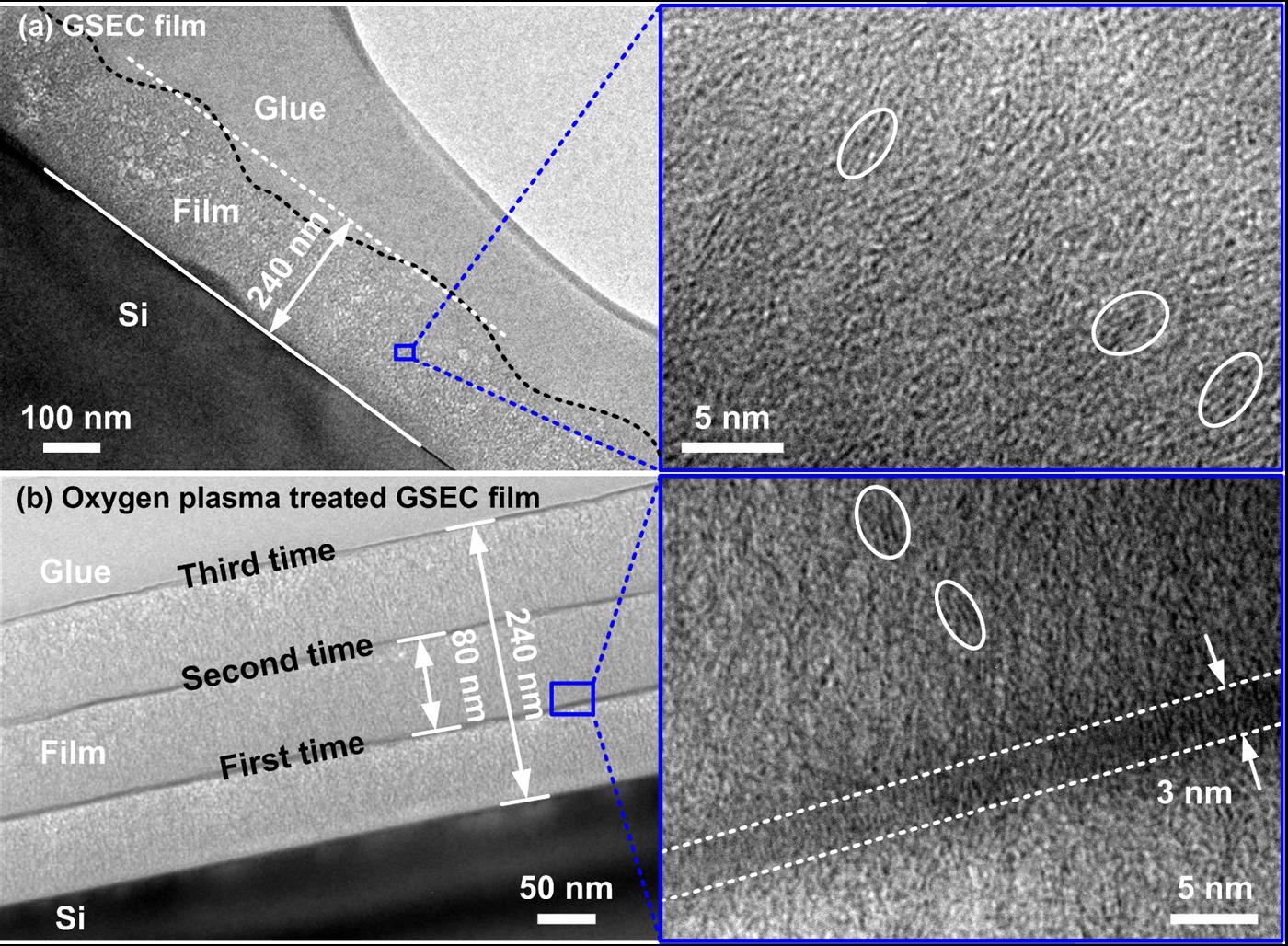 original GSECand oxygen plasma treated GSEC films were compared. The